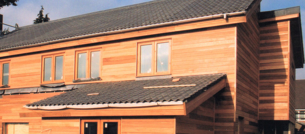 Energy saving devices include heavily insulated timber frame walls and roofs, conservatories to houses, careful sizing and orientation of windows, low-energy lighting, solar water heating panels and communal heating systems; this accounts for a 50 per cent reduction in energy usage. Water consumption is reduced by 30 per cent by incorporating grey water recycling, spray taps and rainwater harvesting. Materials are chosen for their sustainability, such as the timber frame, Western Red Cedar cladding and recyclable aluminium roofs and rainwater goods.