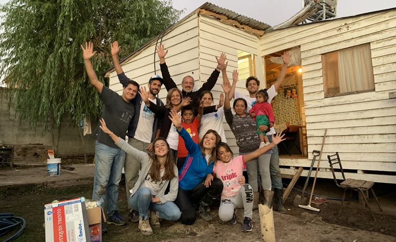 In 2015, Módulo Sanitario became the first organisation in Argentina aiming to tackle this problem at scale by installing prefabricated bathroom and kitchen cabins in people’s homes. Beneficiaries work closely with volunteers, building a septic tank and contributing 11% (around $8,500 AR or $90 USD) of the cabin’s cost before construction begins. The cabins are assembled over two days and include hot and cold-water facilities, drainage, electricity, sink, space for an oven, hand-washing sink, toilet, shower and heating. Each household is given hygiene training and a kit containing soap, toothpaste and detergent among other items.